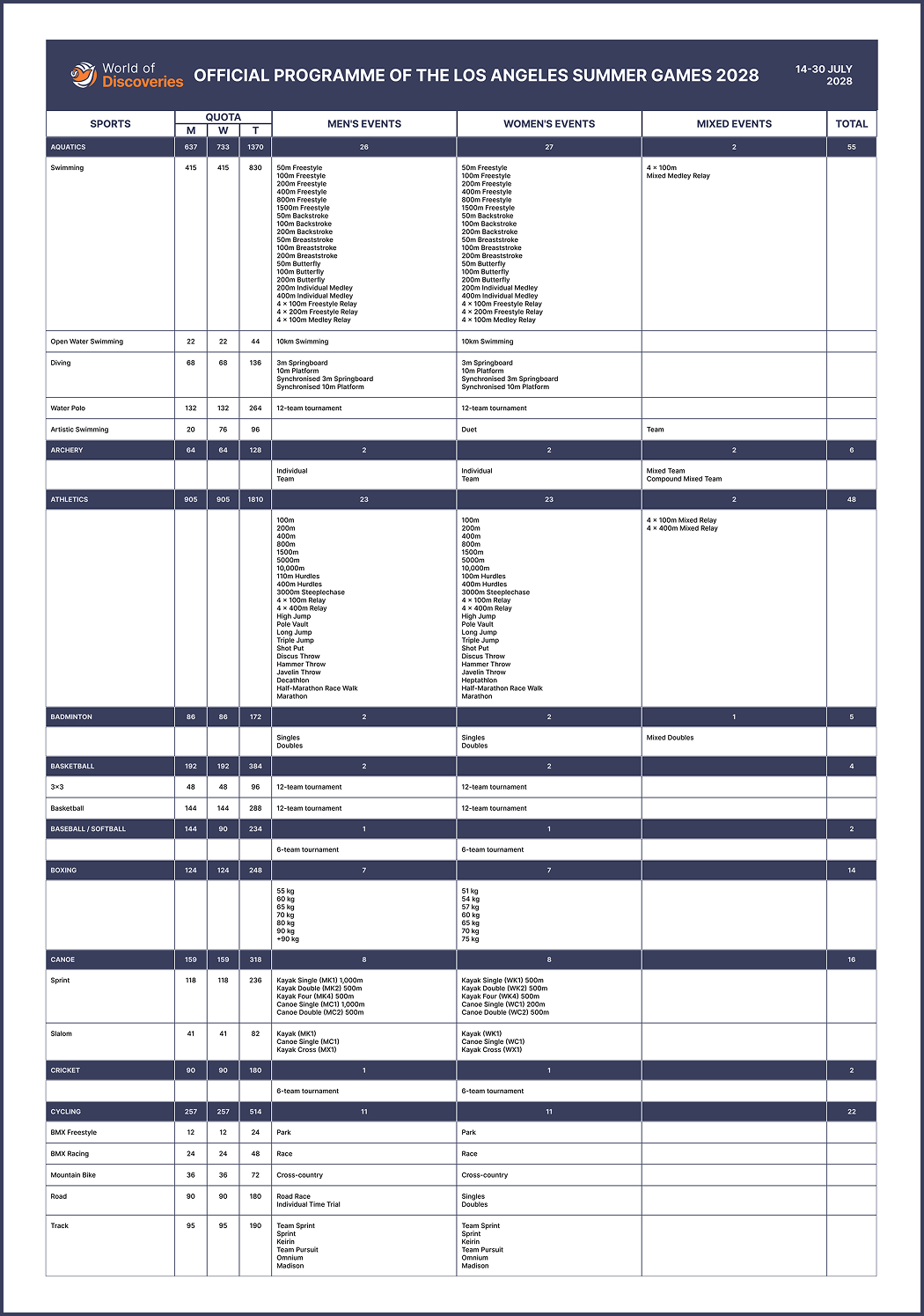 Sports of the Los Angeles Summer Games 2028